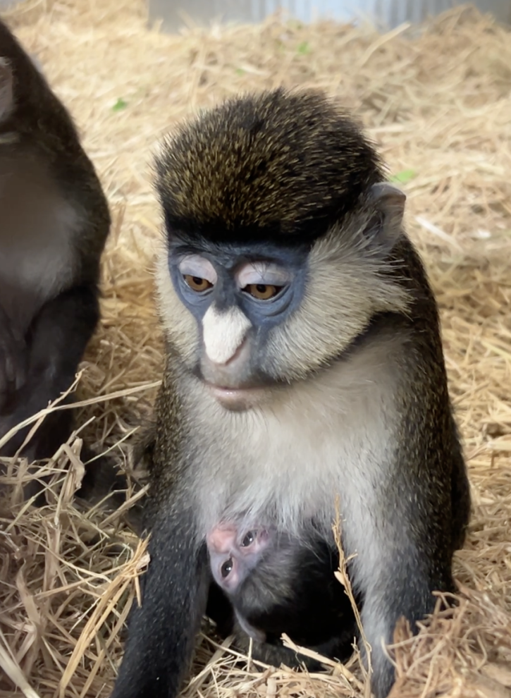 Newborn red-tailed guenon monkey at Oakland Zoo.