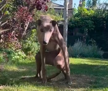 Hazel’s life modified right away. After being rescued from a greyhound charity in North Wales, his future appeared vibrant and peaceable. He had solely raced a handful of occasions earlier than leaving that world behind. However simply as he started adjusting to a calmer life, a sudden and extreme disc herniation struck. It broken a significant artery in his backbone and left him fully paralyzed inside seconds.