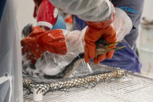 Upon arrival, oiled birds obtain rapid stabilization with heat, fluids, and vitamin earlier than being fastidiously washed by educated workers and volunteers utilizing heat water and Daybreak dish cleaning soap – a trusted cleansing agent sturdy sufficient to take away oil however light sufficient for delicate feathers.