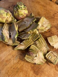 And with spring comes artichokes, mama’s favourite vegetable. Listed here are child artichokes, lower into effective slices to toss in flour, salt, pepper and paprika and sauté in olive oil till crisp…yummy yum.