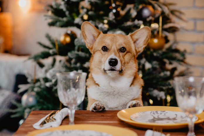 Dog begging during holiday meal