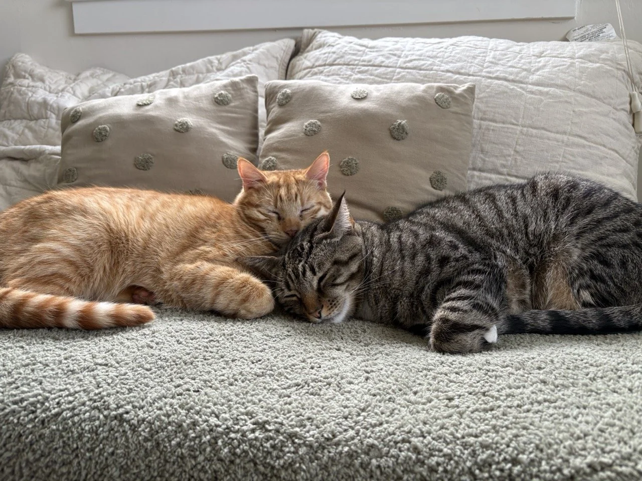 A method for cats to develop belief is to see trusting conduct modeled by different cats, so we positioned them in our free-roaming area for some social studying. Though Wayne and Garth settled into our Cat Zone shortly, they struggled to draw adopters. They remained hesitant round individuals, which the typical visitor might shortly understand as “not ” or “not pleasant.” We might see they would want extra predictable interactions to regulate at their very own tempo, so we determined to strive one other method and provides them extra time.